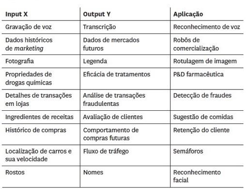 Figura 1 - Exemplos de inputs, outputs e aplicação em machine learning