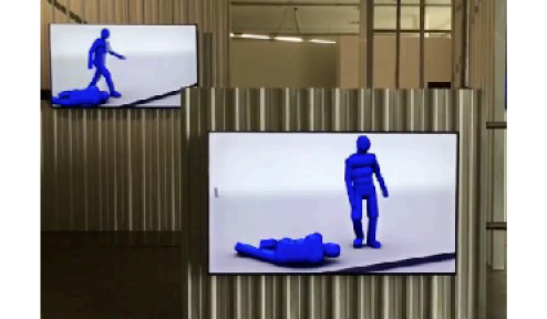 Hito Steyerl, Hell Yeah We Fuck Die, 2016. A videoinstalação, comissionada para a 32ª Bienal de SP, se assemelha a um módulo de treinamento de parkour – esporte dedicado à superação de obstáculos – através de imagens coletadas de diversas fontes online, robôs são provocados e enxotados de diversas formas em ambientes de teste de qualidade de produto. Disponível em http://www.32bienal.org.br/pt/participants/o/2560. Acesso em 16/1/2022.