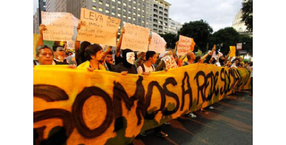 Banner em protesto no Rio de Janeiro, em 17 de junho de 2013, “Nós somos a rede social!”. Os protestos começaram em 13 de junho de 2013, na cidade de São Paulo, com uma convocatória pública para reduzir as tarifas do transporte público e se fizeram ouvir em toda a internet. Disponível em https://es.globalvoices.org/2013/07/01/brasil-una-cobertura-de-protestas-fortalece-internet-como-espacio-para-la movilizacion-ciudadana/. Acesso em 16/1/2022.