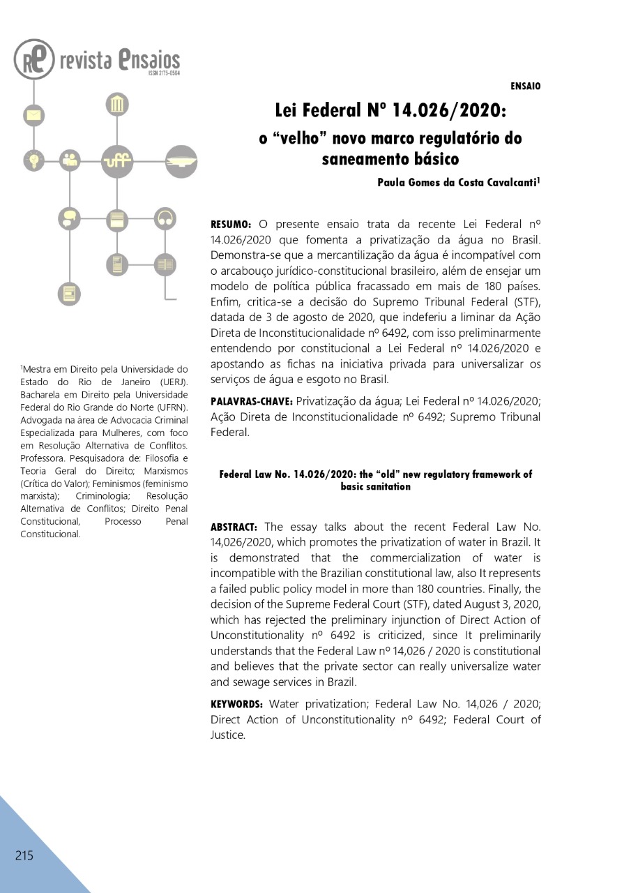• Lei Federal nº 14.026/2020 o "velho" novo marco regulatório do saneamento básico