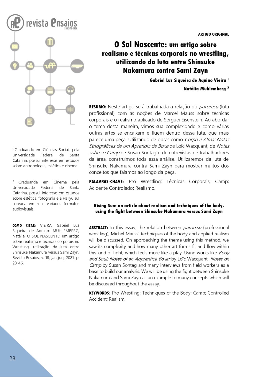 • O sol nascente um ensaio sobre realismo e técnicas corporais no wrestling, utilizando da luta entre Shinsuke Nakamura contra Sami Zayn