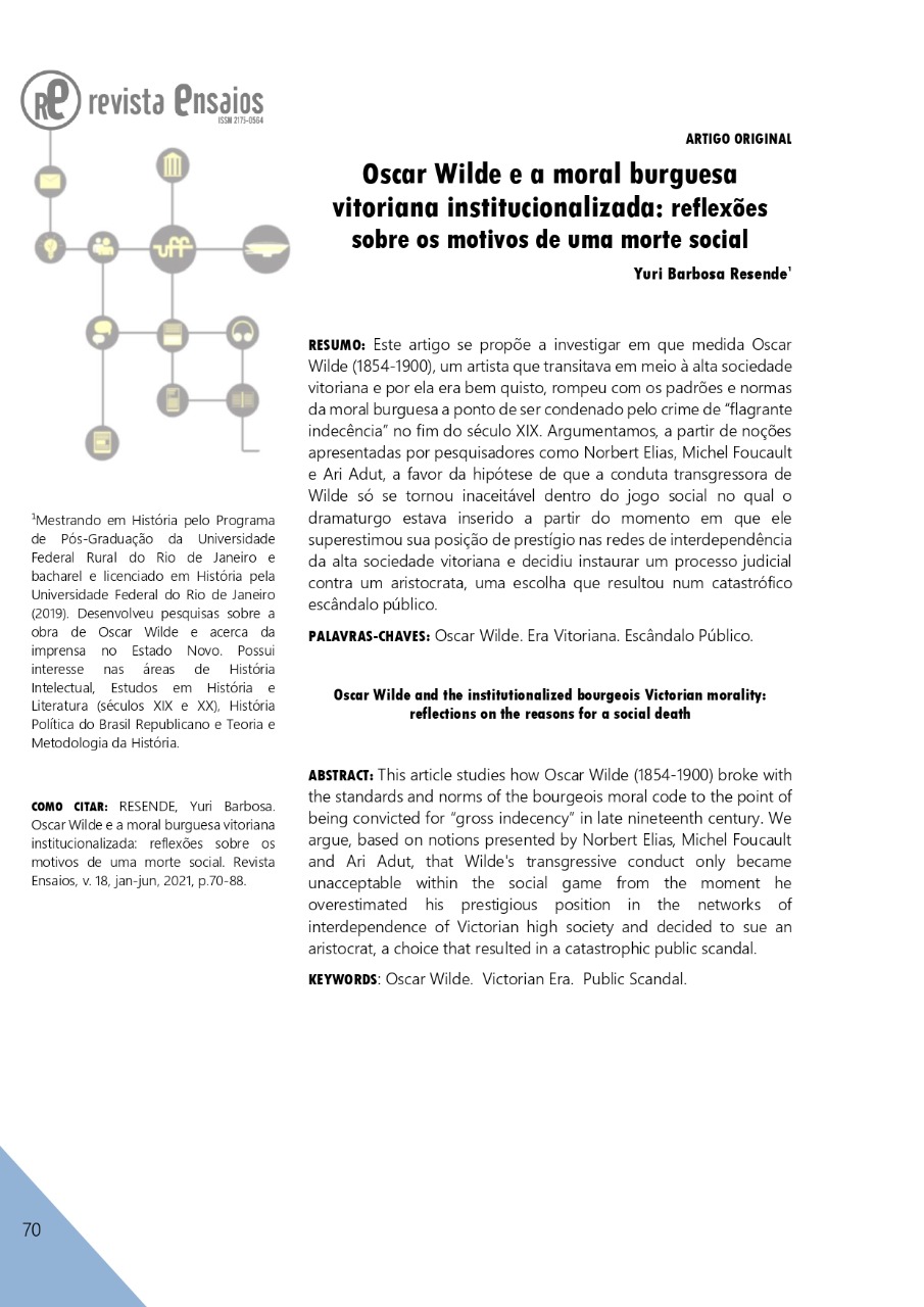• Oscar Wilde e a moral burguesa vitoriana institucionalizada: reflexões sobre os motivos de uma morte social