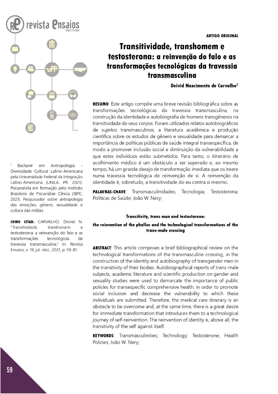 • Transitividade, transhomem e testosterona A reinvenção do falo e as transformações tecnológicas da travessia transmasculina