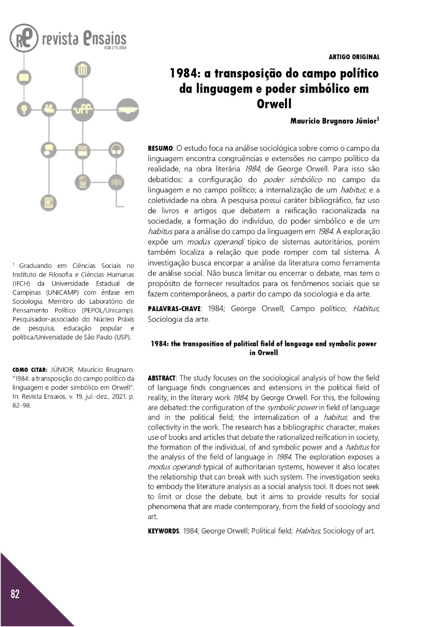 • 1984 a transposição do campo político da linguagem e poder simbólico em Orwell