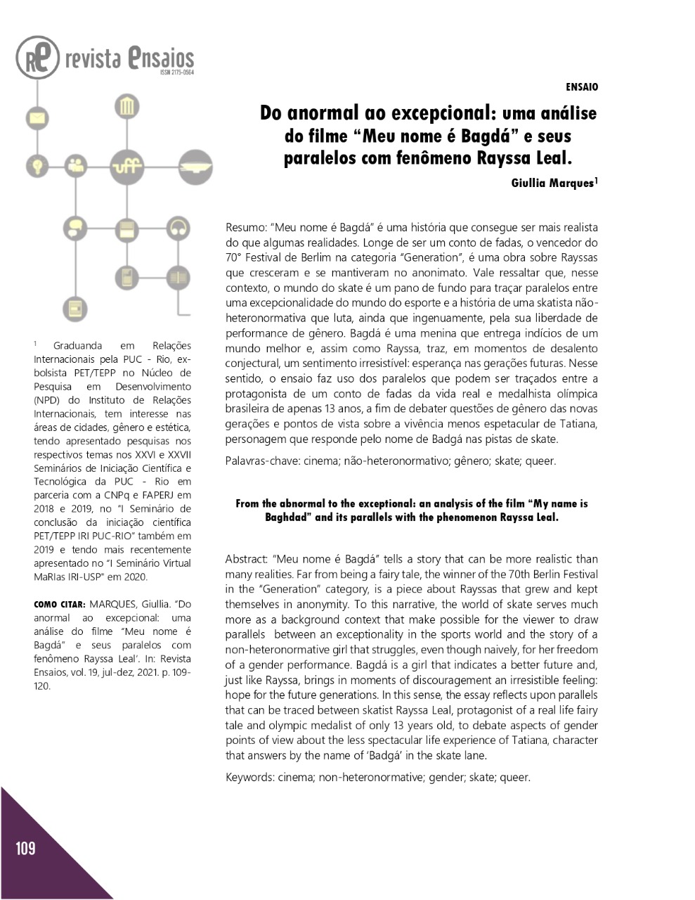 • Do anormal ao excepcional uma análise do filme “Meu nome é Bagdá” à luz do fenômeno Rayssa Leal.
