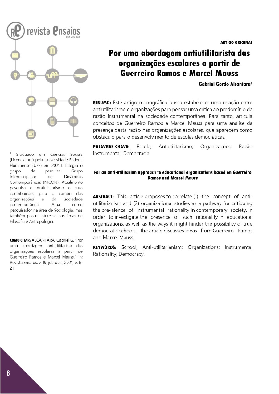 • Por uma abordagem antiutilitarista das organizações escolares a partir de Guerreiro Ramos e Marcel Mauss