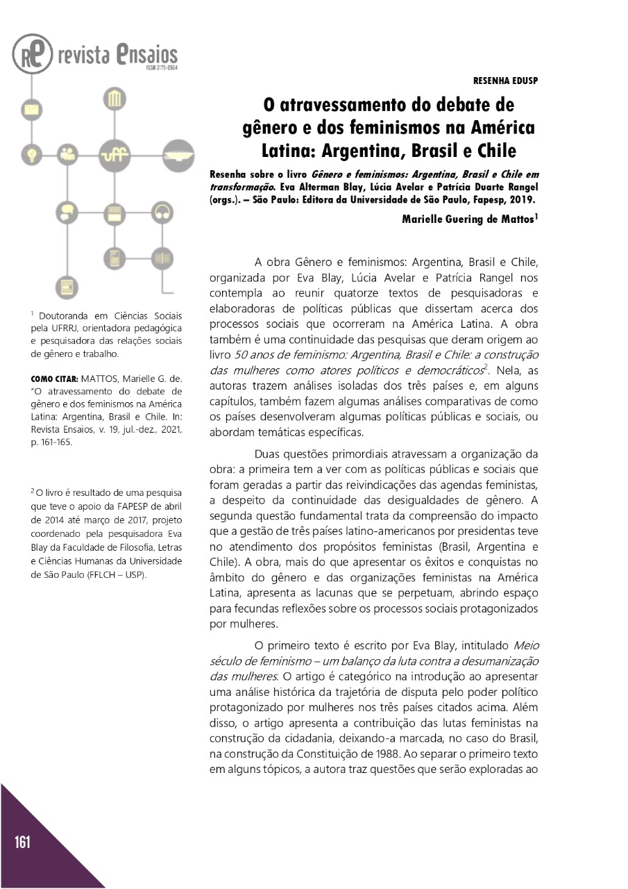 • O atravessamento do debate de gênero e dos feminismos na América Latina Argentina, Brasil e Chile