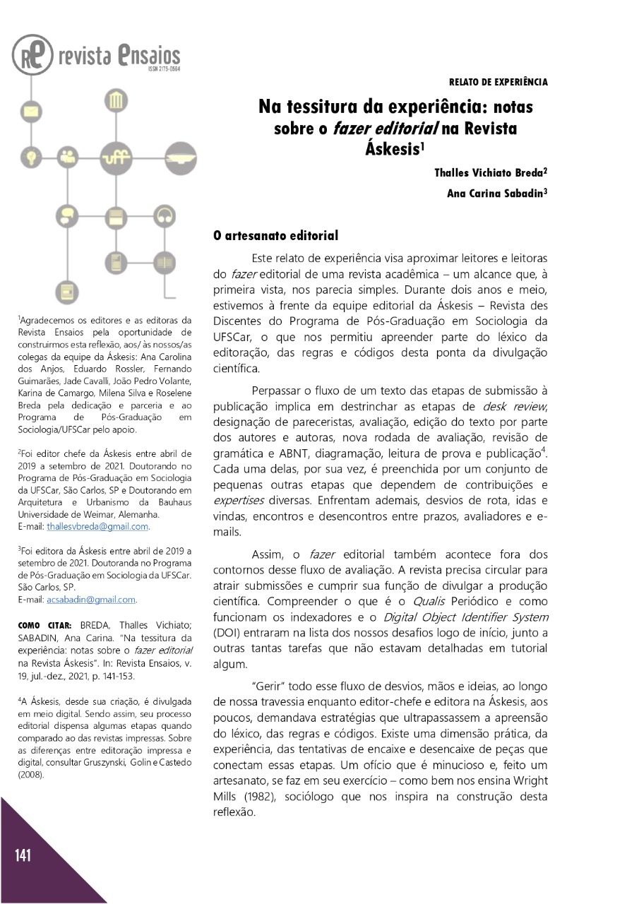 • Na tessitura da experiência breves notas sobre o fazer editorial na Revista Áskesis