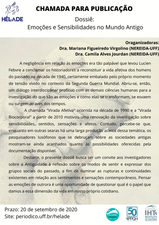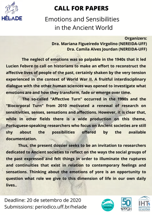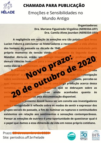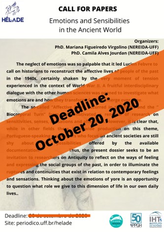 NOVO PRAZO - Chamada para Publicação: "Emoções e Sensibilidades no Mundo Antigo" 2020-09-22 Lire plus Lire plus à propos de NOVO PRAZO - Chamada para Publicação: "Emoções e Sensibilidades no Mundo Antigo"