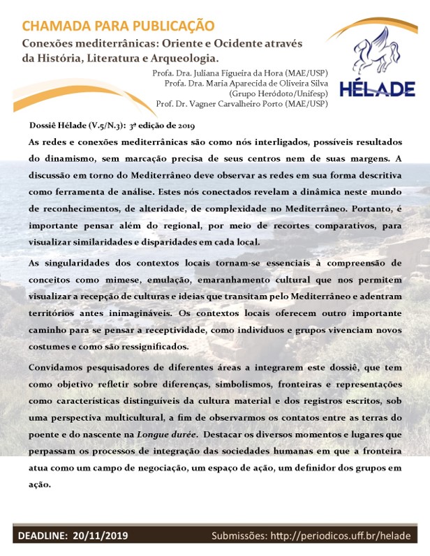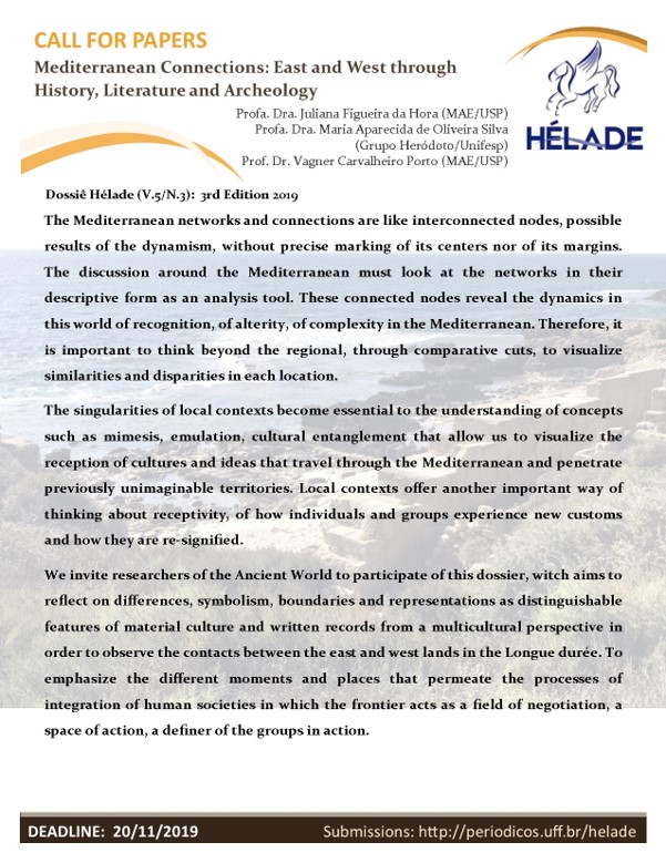 Chamada para Publicação: 'Conexões mediterrânicas: Oriente e Ocidente através da História, Literatura e Arqueologia' 2019-10-06 Lire plus Lire plus à propos de Chamada para Publicação: 'Conexões mediterrânicas: Oriente e Ocidente através da História, Literatura e Arqueologia'