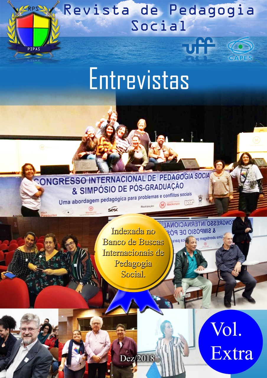 Bem-Vindos ao Volume Extra da Revista de Pedagogia Social da Faculdade de Educação da Universidade Federal Fluminense. Desta feita objetivamos socializar entrevistas realizadas pela equipe da RPS-UFF, em conjunto com o Grupo de Pesquisa em Pedagogia Social da UFF (PIPAS-UFF), por ocasião do VI CIPS. A generosidade acadêmico-epistemológica dos organizadores do Congresso, palestrantes e convidados, aqui se evidencia e, nos permite adentar na ambiência do encontro de cada um, no universo da Pedagogia social com suas interfaces no Brasil e no mundo.