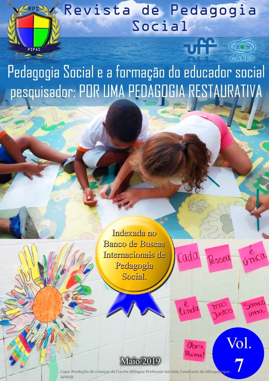 Sejam bem-vindos ao sétimo número da Revista de Pedagogia Social (RPS), da Universidade Federal Fluminense. Neste dossiê abordaremos – em especial, através de artigos, resenhas e relatos de experiências – determinadas reflexões acerca da Pedagogia Social e a formação do educador social- pesquisador, sob a perspectiva de uma pedagogia que se faz restaurativa, sobretudo, ao exercitar a justiça cognitiva. Por justiça cognitiva compreendemos o esforço intelectual, realizado por educadores sociais, na busca de superação dos múltiplos vetores de exclusão dos quais crianças, jovens e suas famílias são vitimados.