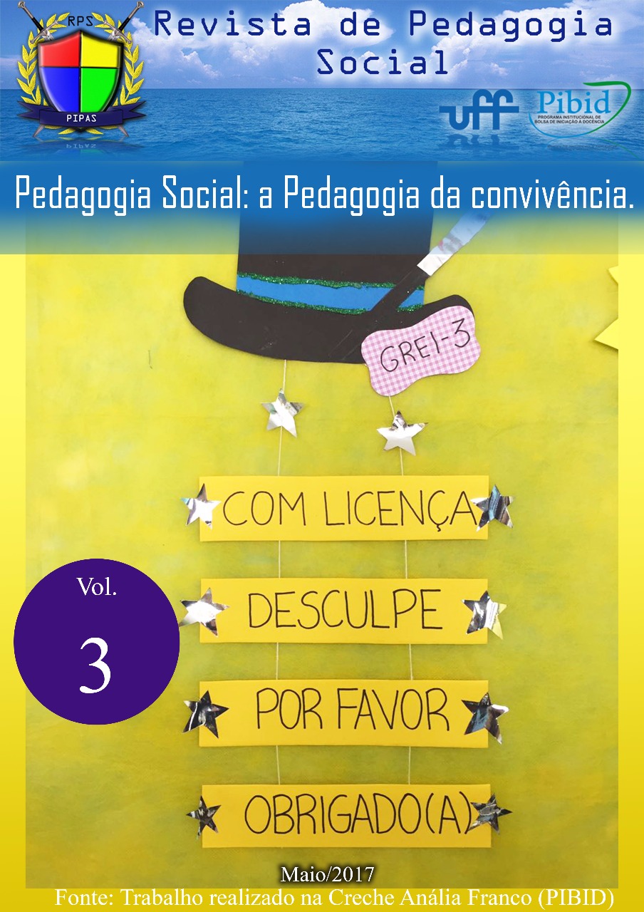 É com alegria que chegamos até aqui com mais de três mil acessos ao volume I da Revista de Pedagogia Social (RPS), da Faculdade de Educação da Universidade Federal Fluminense (FEUFF). Nosso objetivo, acima de tudo, é propiciar um canal de socialização de reflexões acerca da Pedagogia Social em curso, dentro e fora da escola. Refazer o pacto dos educadores com a Educação tem sido apontado, anualmente, após o período de avaliação dos nossos cursos (Extensão e Especialização), de Jornadas de Pedagogia Social e de palestras proferidas, como uma forte marca do trabalho realizado pelo Projeto PIPASUFF. Quando tal afirmativa nos é apresentada, a partir daqueles com os quais trabalhamos, vai se delineando, paulatinamente, um percurso antes não imaginado, confirmando a necessidade urgente do exercício de uma pedagogia que, para além de social, seja humanitária.