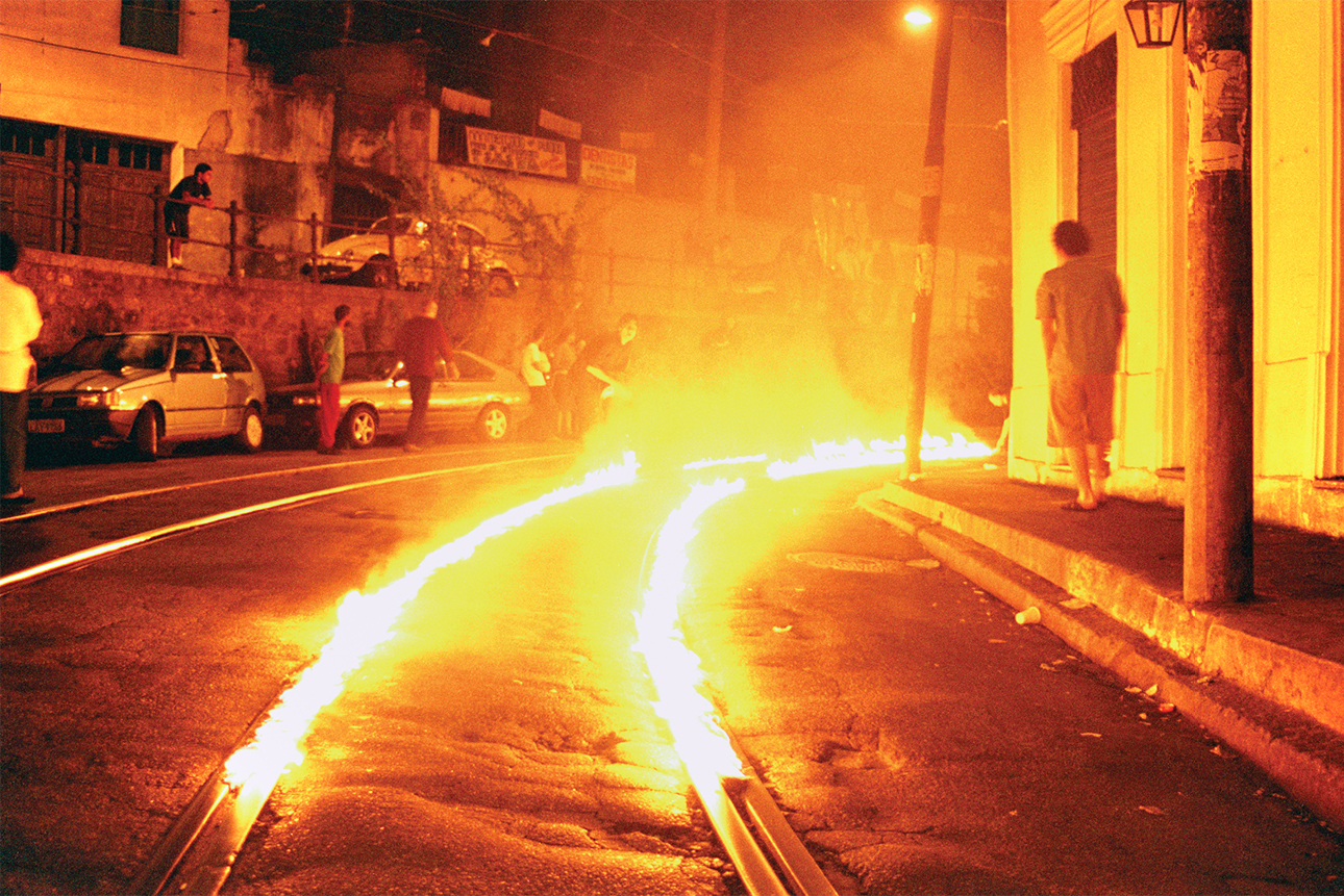 Ronald Duarte, Fogo cruzado, 2002, estopa e querosene. (Foto: Wilton Montenegro)