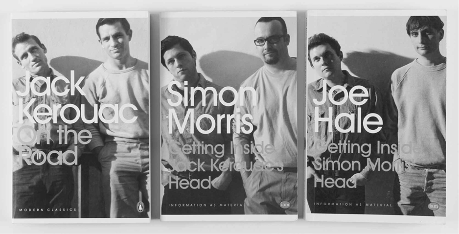 Da direita à esquerda: edição do ano 2000 de On The Road por Jack Kerouac publicado pela Penguin Modern Classics; a edição física de Getting Inside Jack Kerouac’s Head por Simon Morris, publicado por editora própria, Information as Material, em 2010; e Getting Inside Simon Morris’ Head por Joe Hale, publicado pela mesma editora no ano de 2014. (Fonte: MORRIS, 2018)