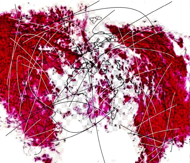 pintei o cu de rosa e sentei no branco. a coisa se faz e revela, meu cu ficou no centro e o mapa-mundi surgiu. era justamente esse lugar que eu queria experimentar por um instante. ser central num mundo a partir do meu cu rosa. voltar pro meu cu a atenção, gozar com o poder de não temer a partir da segurança que o centro me oferece.